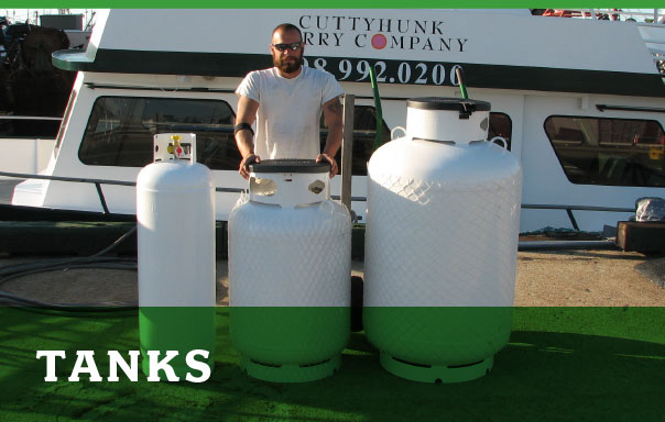 From left to right: Call Jono at 401-965-3480 or We have received the first shipment of 150 - 100lb, 22 - 200lb (Chubbies) 10 - 420lb (Fat Boys). All of the sizes are portable and can be placed in any reasonable, and approved location. Each cylinder is being coated with anti-corrosive primer and gloss white top coat to protect against the corrosive salt air on Cuttyhunk. This paint is used commercially in the painting of bridges and is specifically designed for salt environments. With Cuttyhunk being a small remote island, any strong winds from any direction puts lots of fine salt mist in the air- I'm sure you have noticed how quickly your golf carts, grills, and outdoor furniture rusts. This is exactly why we are spending the money to carefully prime and paint each cylinder even though they come with a factory baked finish. We want to avoid the rusting problems that are plaguing the existing gas bottles now and creating a hazardous situation. |
